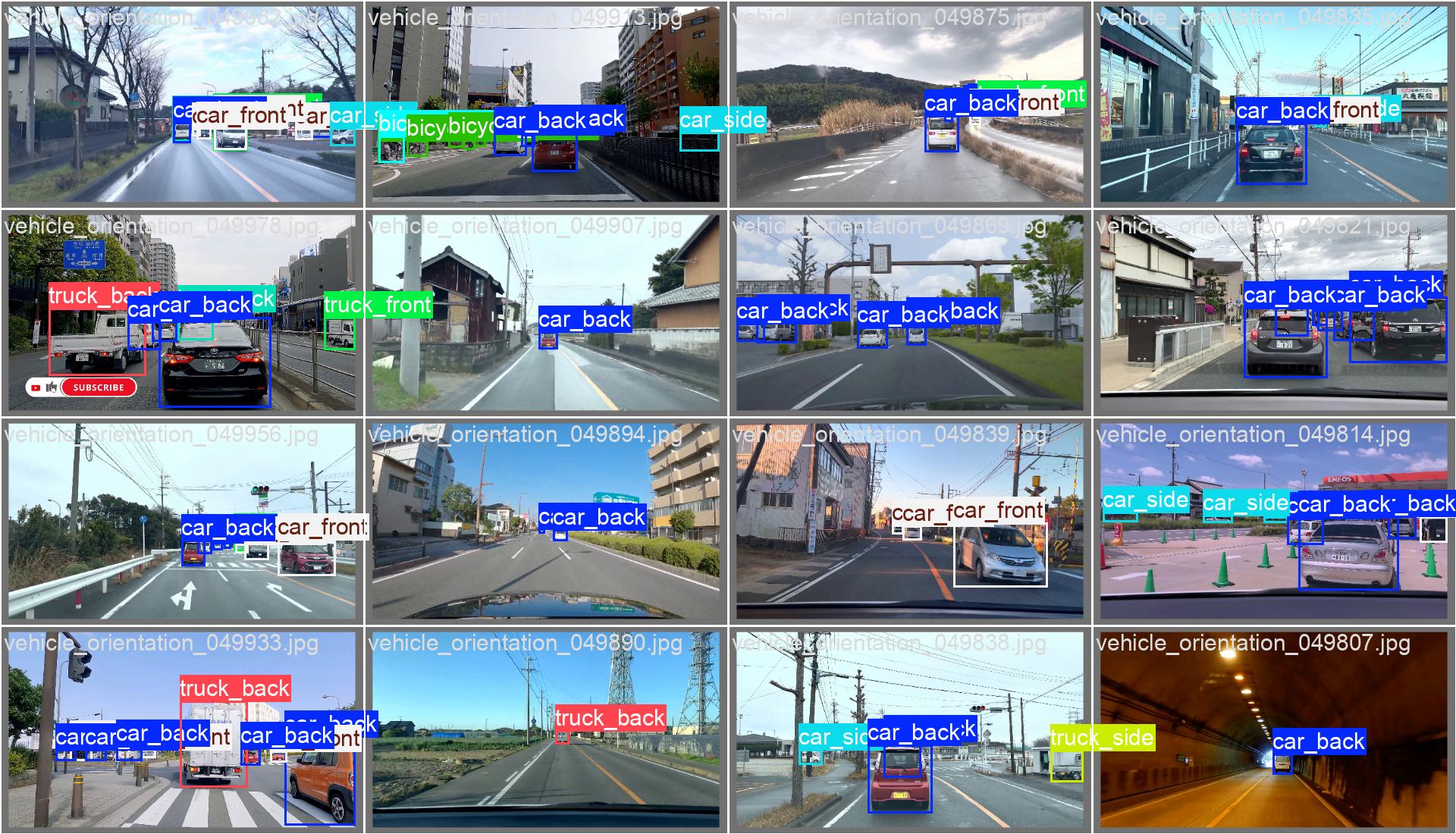 - 数据集介绍:自动驾驶场景道路车辆方向检测数据集,真实场景高质量图片数据,涉及场景丰富,比如城市路口车辆、高速匝道车辆、农村乡道车辆、车辆朝向变化、车辆部分朝向遮挡数据等,且类别丰富,划分为 "car_back"、"car_side"、"car_front"、"bus_back"、"bus_side"、"bus_front"、"truck_back"、"truck_side"、"truck_front"、"motorcycle_back"、"motorcycle_side"、"motorcycle_front"、"bicycle_back"、"bicycle_side"、"bicycle_front" 15 个类别;