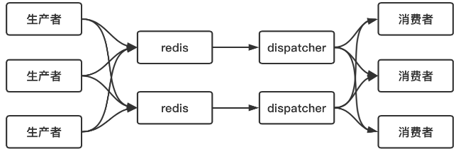 生产者将定时任务 hash 到不同的 redis 实体中,为每一个 redis 实体分配一个 dispatcher 进程,用来定时获取 redis 中超时事件并发布到不同的消费者中;