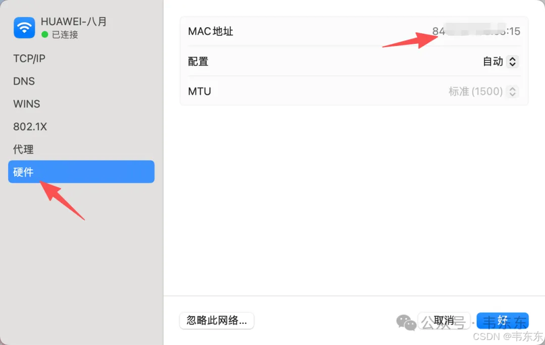操作步骤:先查看 Mac Mini 的 MAC 地址(系统设置 → 网络 → Wi-Fi → 详细信息 → 硬件,或者命令行 ifconfig en0 | grep ether),然后登录路由器管理页面,找到「DHCP 服务」或「静态地址分配」或「地址绑定」,添加绑定规则。