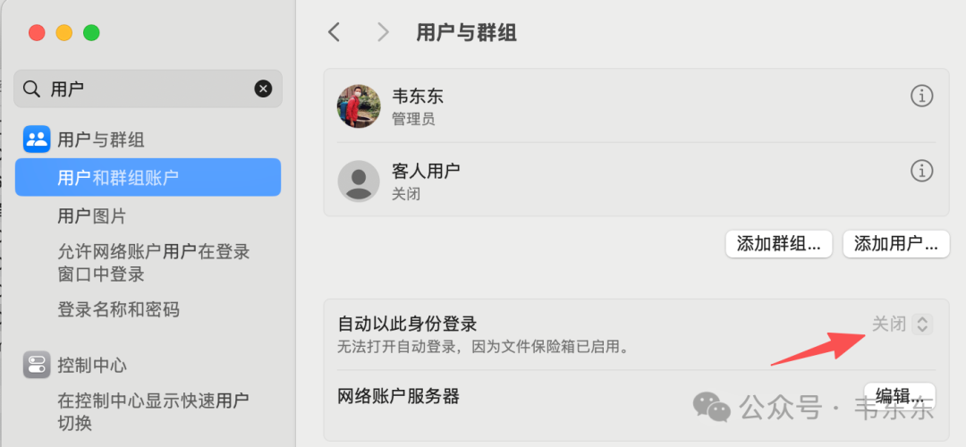 有一个注意事项:如果这个选项是灰色不可选,通常是因为启用了 FileVault(macOS 的全盘加密)。对于内网部署的服务器,物理访问本身就是受控的,可以考虑禁用 FileVault: