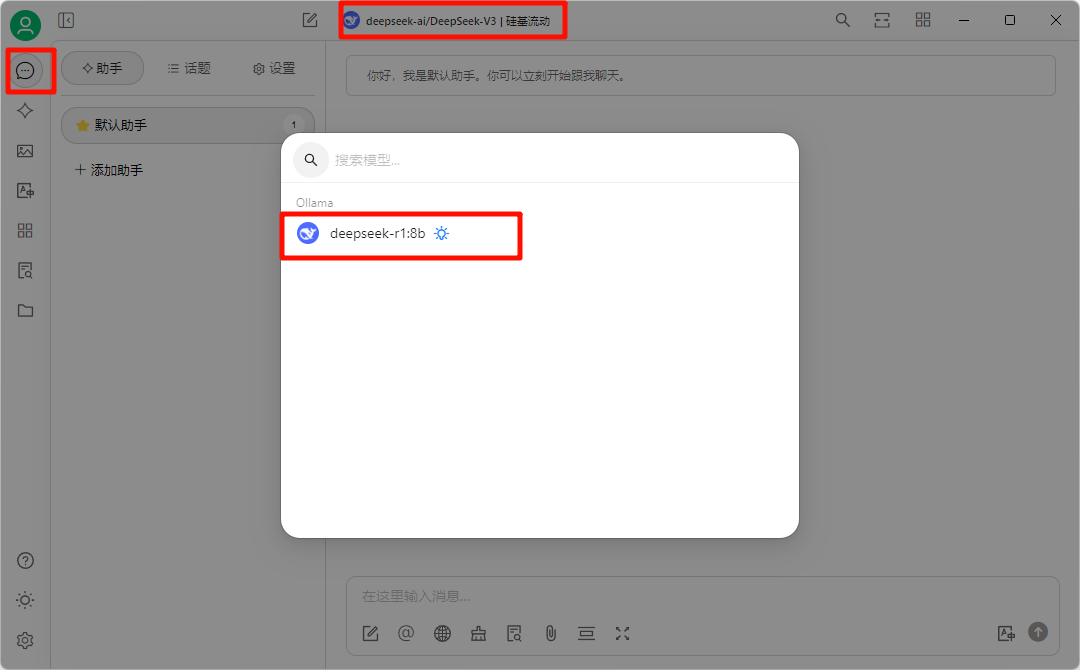 回到聊天界面,选择添加的模型,即可使用。