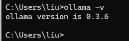 打开cmd命令行,输入ollama -v出现版本信息,说明安装成功。