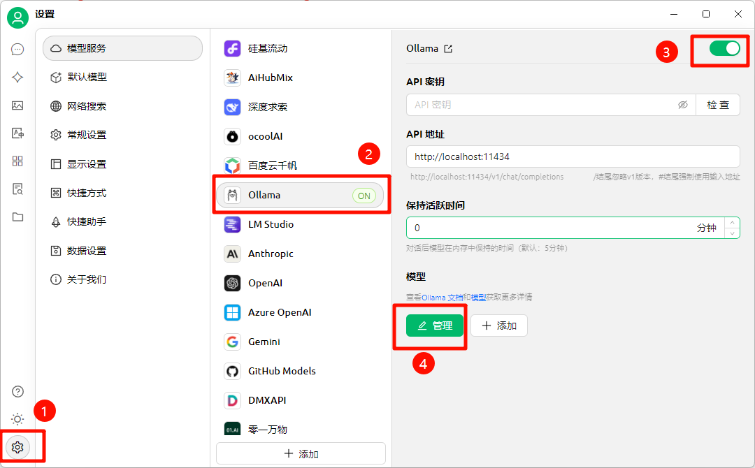 点击左下角设置,添加模型。