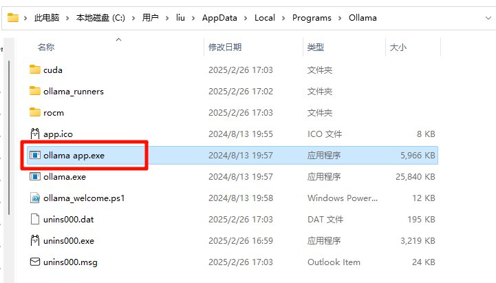 Ollama的安装位置是C:\Users\{用户名}\AppData\Local\Programs\Ollama
