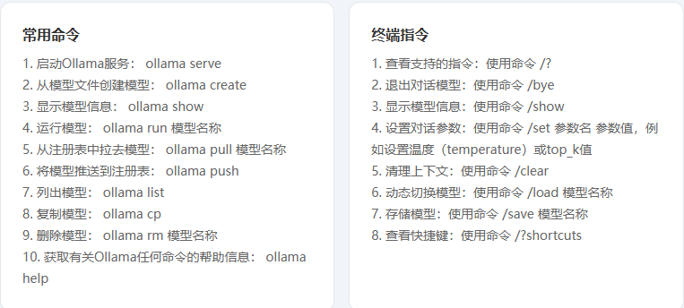 当然,也可以在命令行中使用命令来启动。只不过使用命令行启动的话,命令行窗口关闭后,ollama也会关闭。