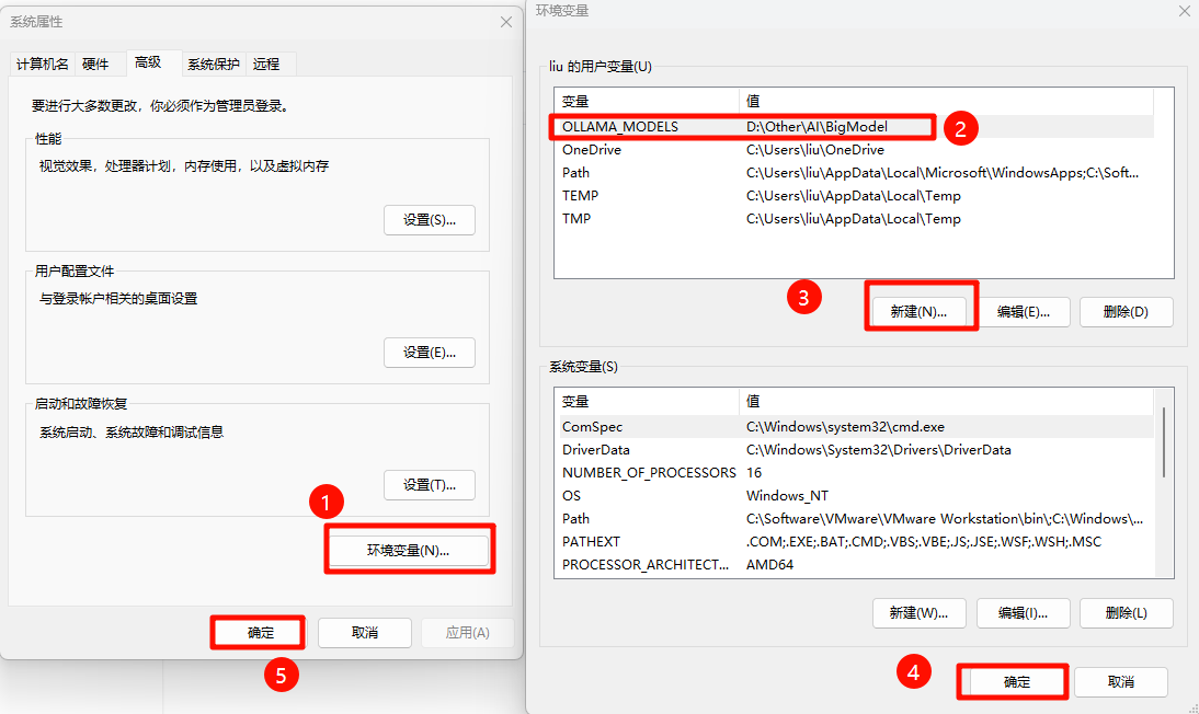 注意!!!在下载模型前,先更改环境变量,不然默认是将模型下载到C盘。