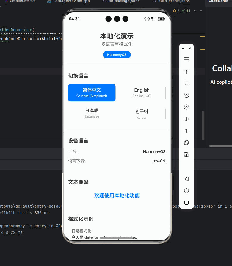 这些差异导致直接将React Native应用迁移到OpenHarmony时,本地化功能往往无法正常工作,需要针对性地进行适配。