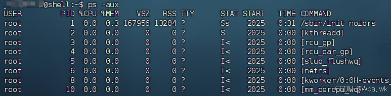 STAT:进程状态(S=睡眠, R=运行, Z=僵尸等)
