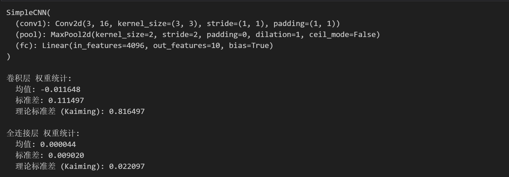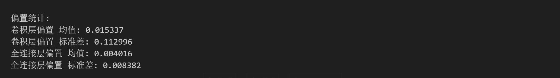 print(f"全连接层偏置 标准差: {fc_bias.std().item():.6f}")