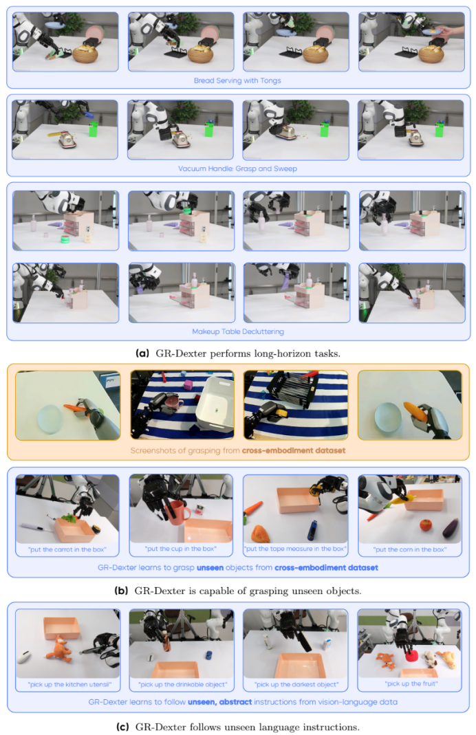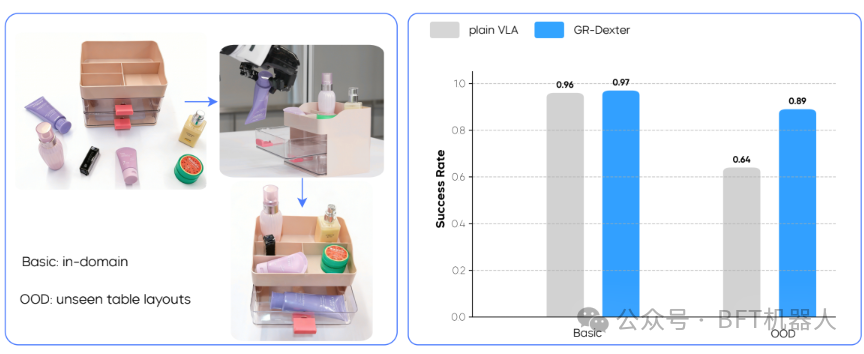 在真实世界测试中,基于FR3的GR-Dexter系统展现了惊人的泛化能力。