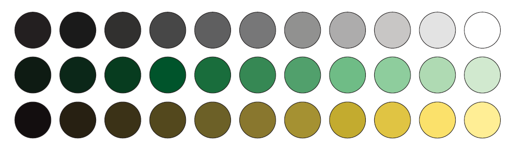 -----------------图 3.5:中性色、绿色和黄色,从左到右明度逐渐增加。------------