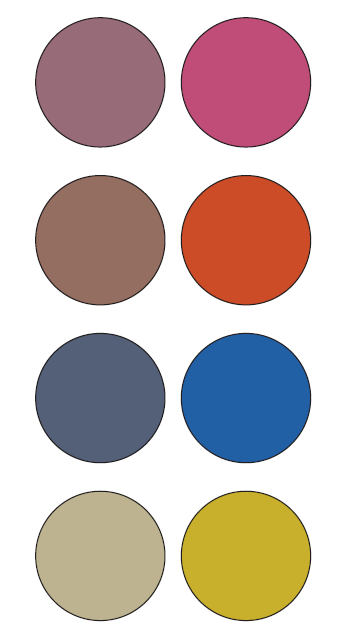 --------------------图 3.17:每对颜色都具有相同的Munsell明度值,但Munsell色度值不同。感知明度上的差异是由Helmholtz--Kohlrausch现象引起的。---------------