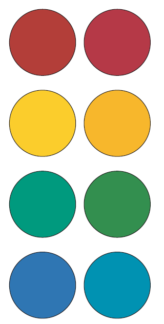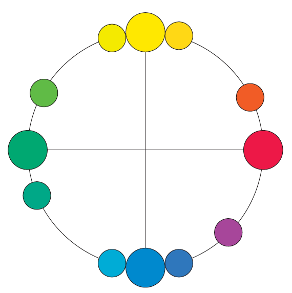 混色系统阐明了原色及其混合色之间的关系。每一种颜色都由各原色( color primaries**)** 的含量来定义。例如,在印刷中,颜色通常由四种原色油墨调配而成:青色、品红色、黄色和黑色。Pantone配色系统使用 14 种油墨进行专色印刷,即预先混合一种或多种油墨以生成单一颜色。彩色显示器使用三种光源:红色、绿色和蓝色。销售点油漆调配系统使用大约十几种颜料浓缩液。即使使用颜色名称来标明,其背后也存在着相应的配方。一般来说,特定颜色是由四种或更少的着色剂混合而成。有几种系统值得进一步描述。