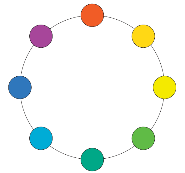 ----------------图 3.2:图 3.1 中所示的颜色按色相排列成一个色环。--------------