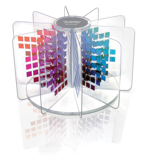 -------------------------图 3.15:Munsell颜色树,展示了色相、视度和饱和度之间的三维关系。(来源:由 X-Rite Pantone, Inc. 提供。)--------------------------