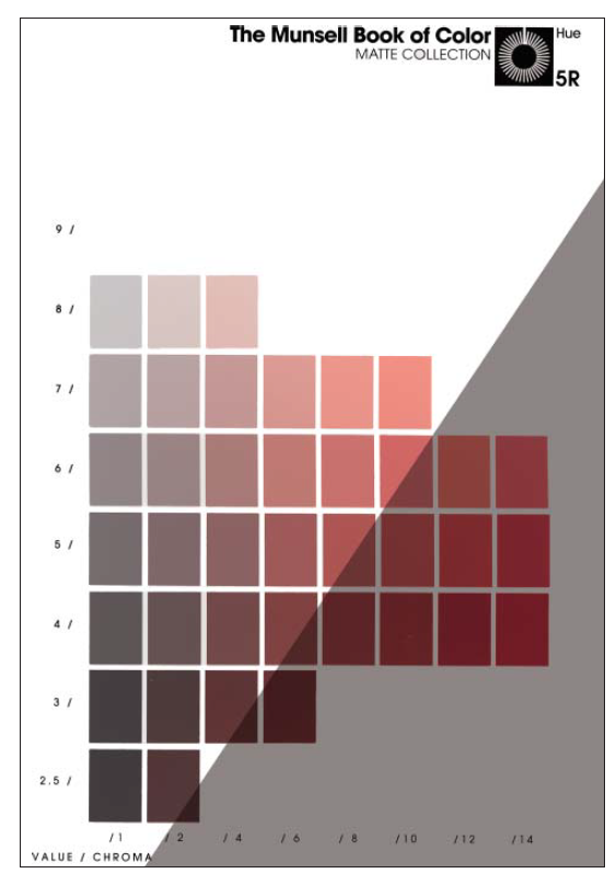 --------------图 3.18:Munsell色彩手册中的一页,部分区域处于阴影中。----------