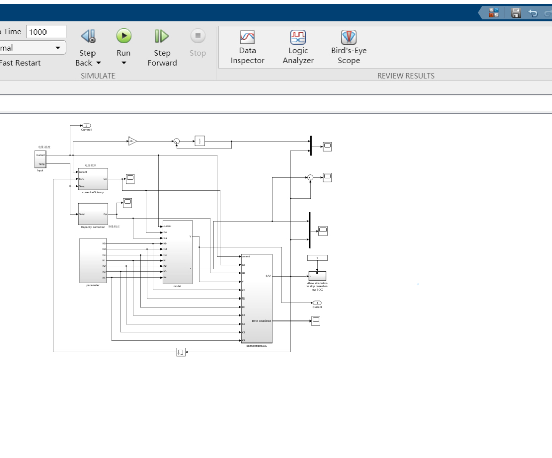 Simulink建模时得搞个双线作战------上层跑EKF算法,底层做参数辨识。有个骚操作是把充放电实验数据喂进Parameter Estimation工具,让系统自动调参。比如在5℃和35℃下分别做脉冲测试,抓取R0随温度变化的斜率参数。
