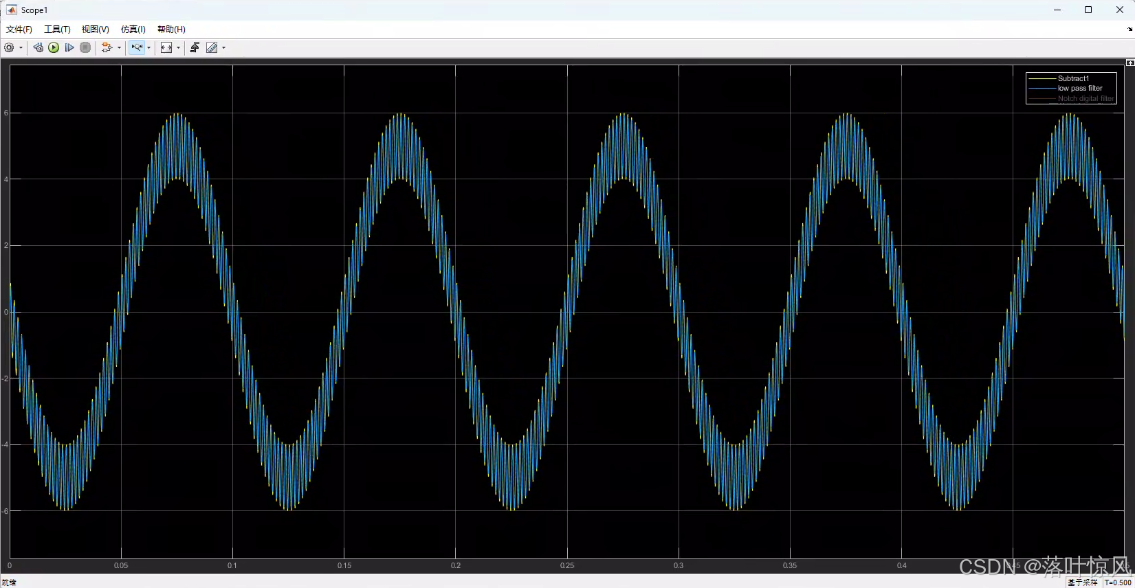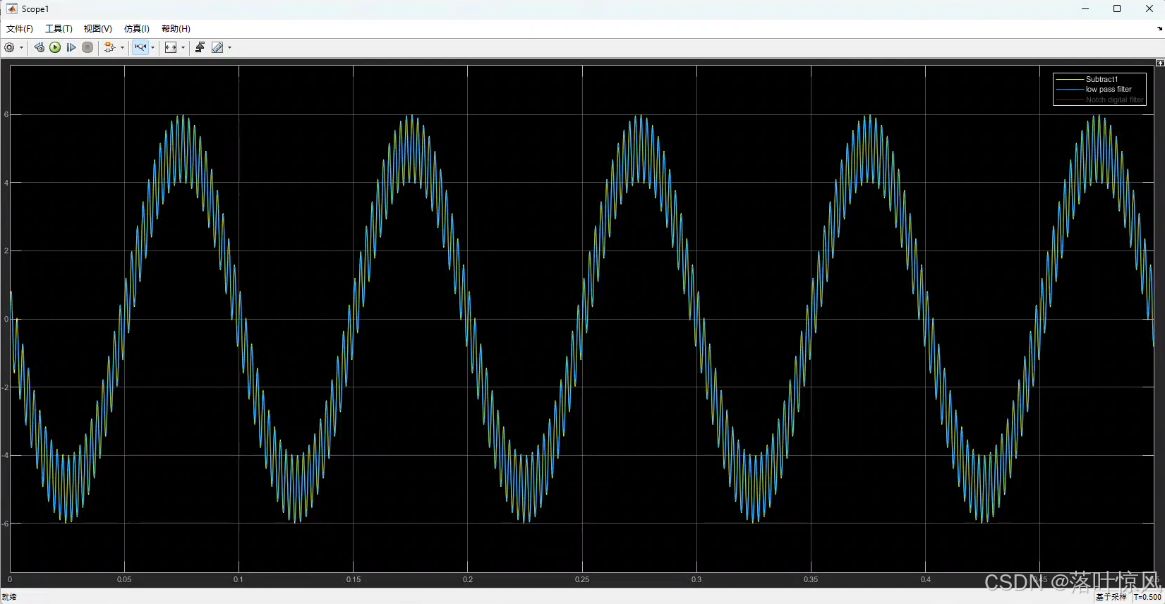 测试波形为 10 Hz + 500 Hz 10\ \text{Hz}+500\ \text{Hz} 10 Hz+500 Hz 叠加信号的仿真波形: