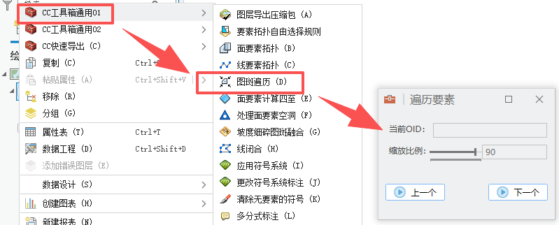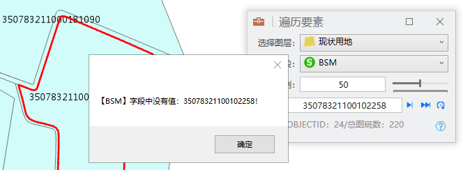 再PS:如果你当前有选择图斑,那工具只会在这些选中的图斑里进行遍历。