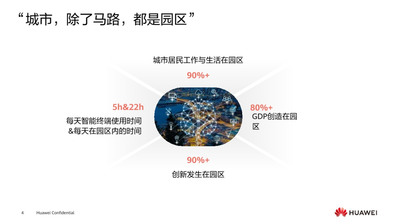 在城市中,可以说除了马路,都是园区,正常工作和生活都是需要网络进行接入的,基本上都是在园区内,也就是说一天24小时,可能18个小时都是在园区内去使用网络接入,同时国家将近80%的GDP创造也是在园区完成的,而90%的创新也是发生在园区,从以上这些概述中都能够知道,在这样的一个信息社会,可以说通信网络无处不在,而园区网络,也是处在一个非常重要的具有战略性的核心地位。