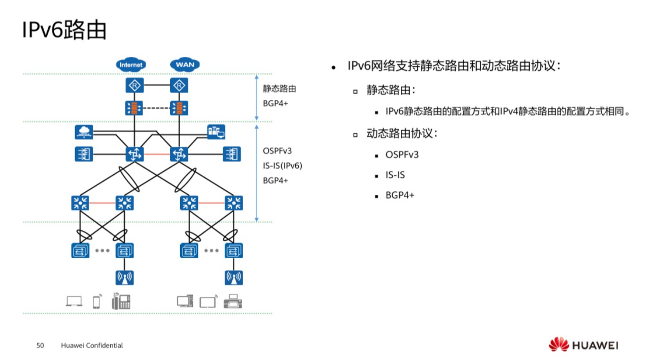 关于前面所学习到的路由协议,基本上都是基于IPv4去介绍的,如果网络更替为IPv6,对于路由协议会有什么影响呢?路由分为静态路由和动态路由,其中静态路由关于IPv6的配置和IPv4基本上是相同的,而动态路由协议OSPF,IS-IS和BGP,它们的工作原理和IPv4去相比的话,也基本上可以说是一模一样,只不过在实施和部署配置方面有稍微细节的差别,真正的去学习路由协议,关于IPv6的版本之后,再和IPv4比较,去了解它们的不同之处。