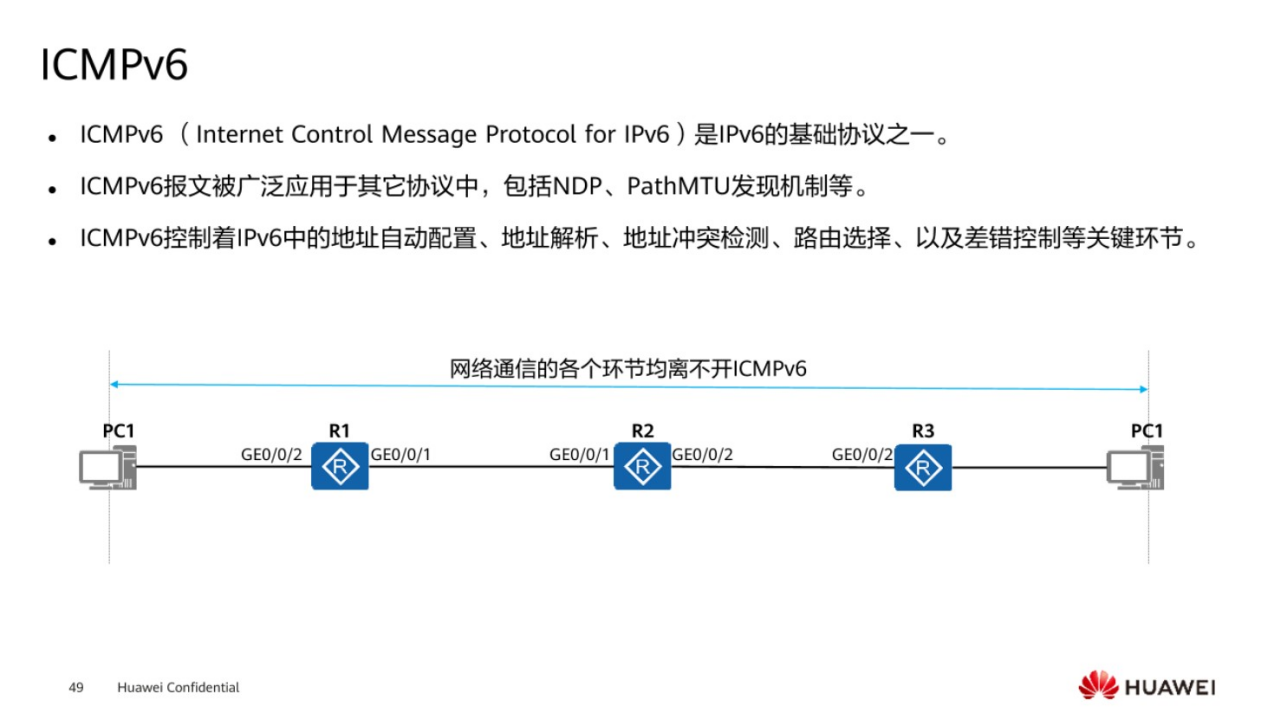 ICMPv6是IPV6协议实现的一个基础,它包含了很多协议,比如说邻居发现协议(NDP),PathMTU,通过ICMP能够实现关于IPv6地址中的自动配置,地址解析,地址冲突等等很多功能,因此IPv6这个协议,相较于IPv4而言,如果深入的去学习它的技术原理之后,会发现,它比IPv4复杂的多得多。