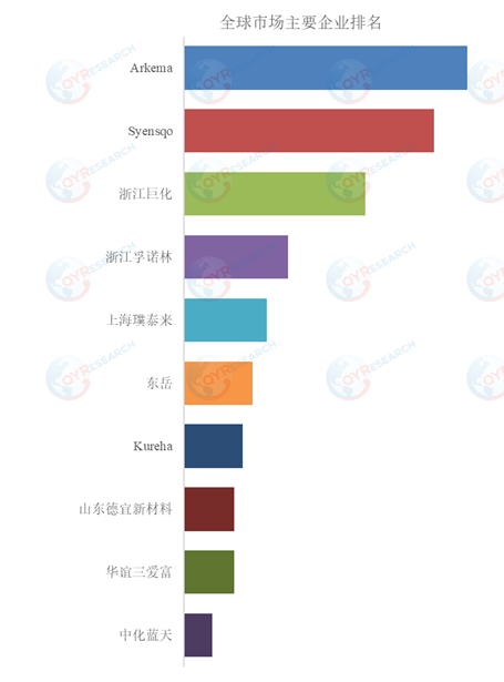 当前全球PVDF产能高度集中于少数头部企业。根据QYResearch 2024年调研数据,前五大厂商------包括法国Arkema、比利时Syensqo(原索尔维特种聚合物业务)、中国浙江巨化、浙江孚诺林及上海璞泰来------合计占据约73.0%的全球市场份额。其中,海外巨头长期主导高端电池级PVDF供应,技术壁垒体现在高纯度控制、批次一致性及与电解液体系的兼容性验证等方面。