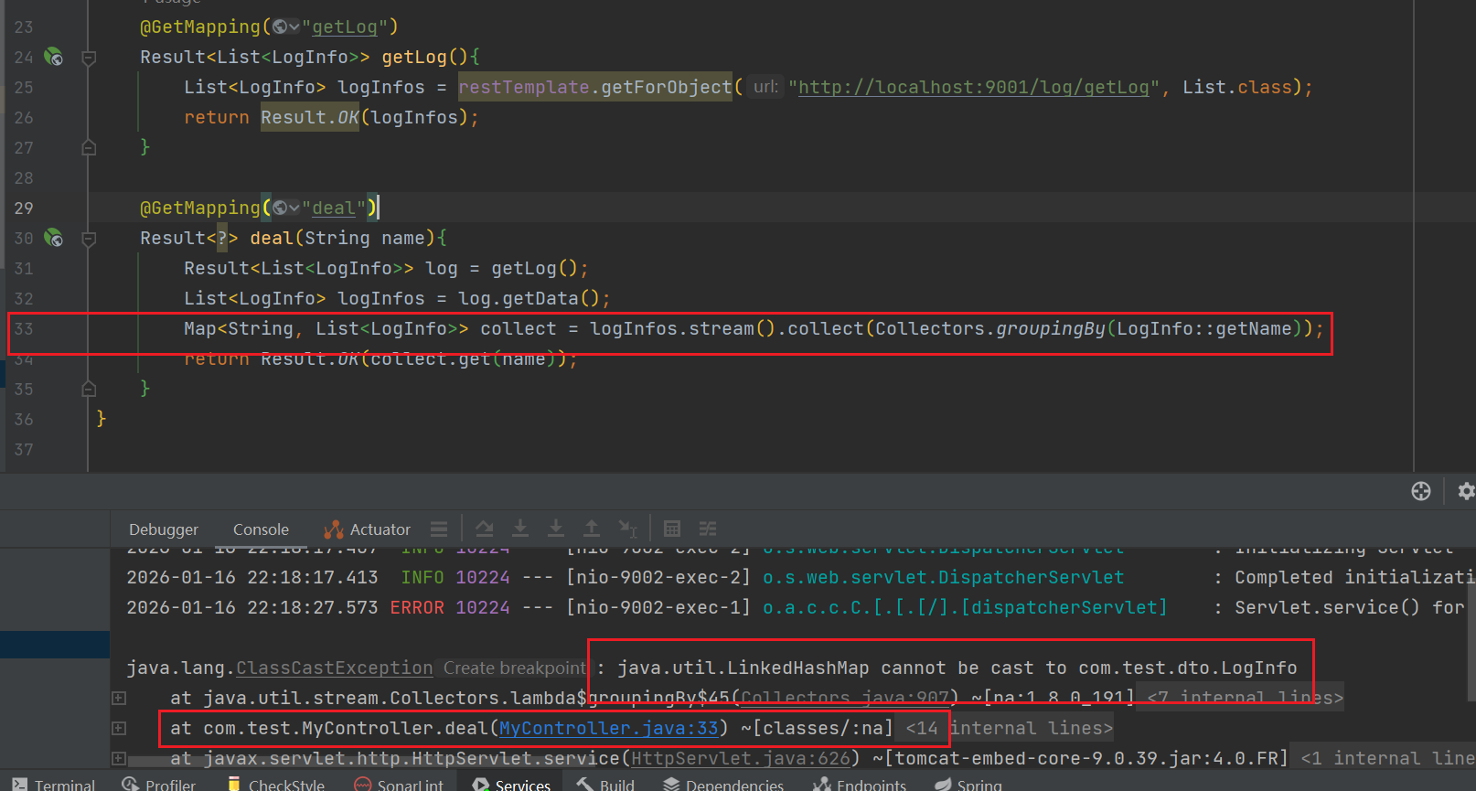 List<LogInfo> logInfos = restTemplate.getForObject("http://localhost:9001/log/getLog", List.class);