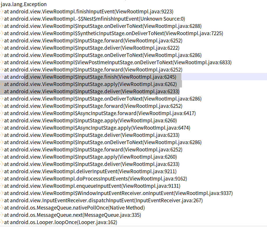 但是如果和demo一样,在dispatch过程中抛出异常不执行到finishInputEvent呢?那是不是就无法进行sendFinish呢了?这里就需要深入分析native部分代码了。