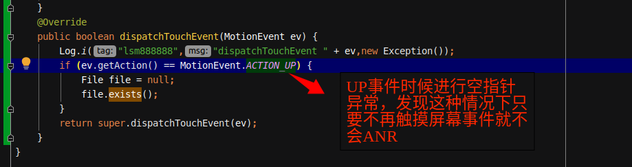 我们尝试revert小米提交验证,发现确实产生异常的当前事件确实是可以发送finish到InputDispatcher中,如果不再进行触摸其实也不会ANR