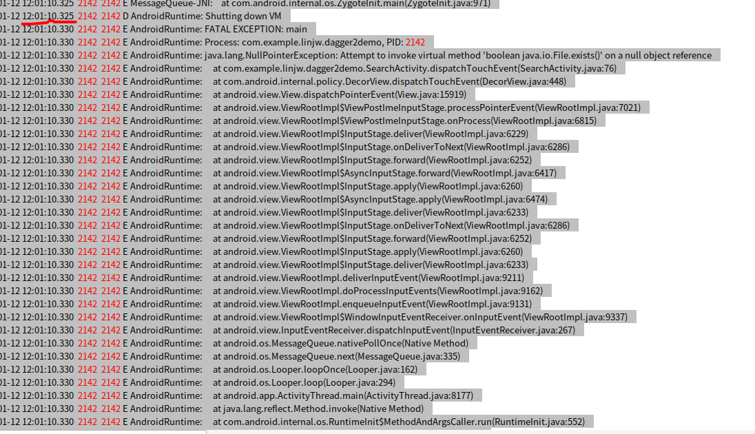 01-12 11:25:51.474 2627 2627 E AndroidRuntime: Process: com.example.linjw.dagger2demo, PID: 2627