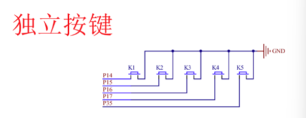 当按键未被按下时,引脚会呈现高电平,当按键被按下时,会造成引脚和GND短路到一