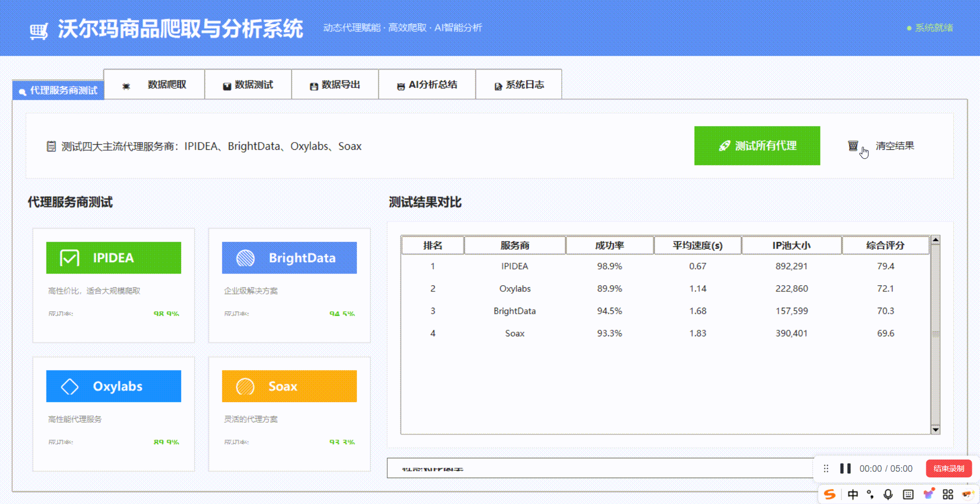 选择代理服务商时需重点关注几个指标:成功率 (沃尔玛商品页应≥95%)、响应延迟(美区IP应<1.5秒)。
