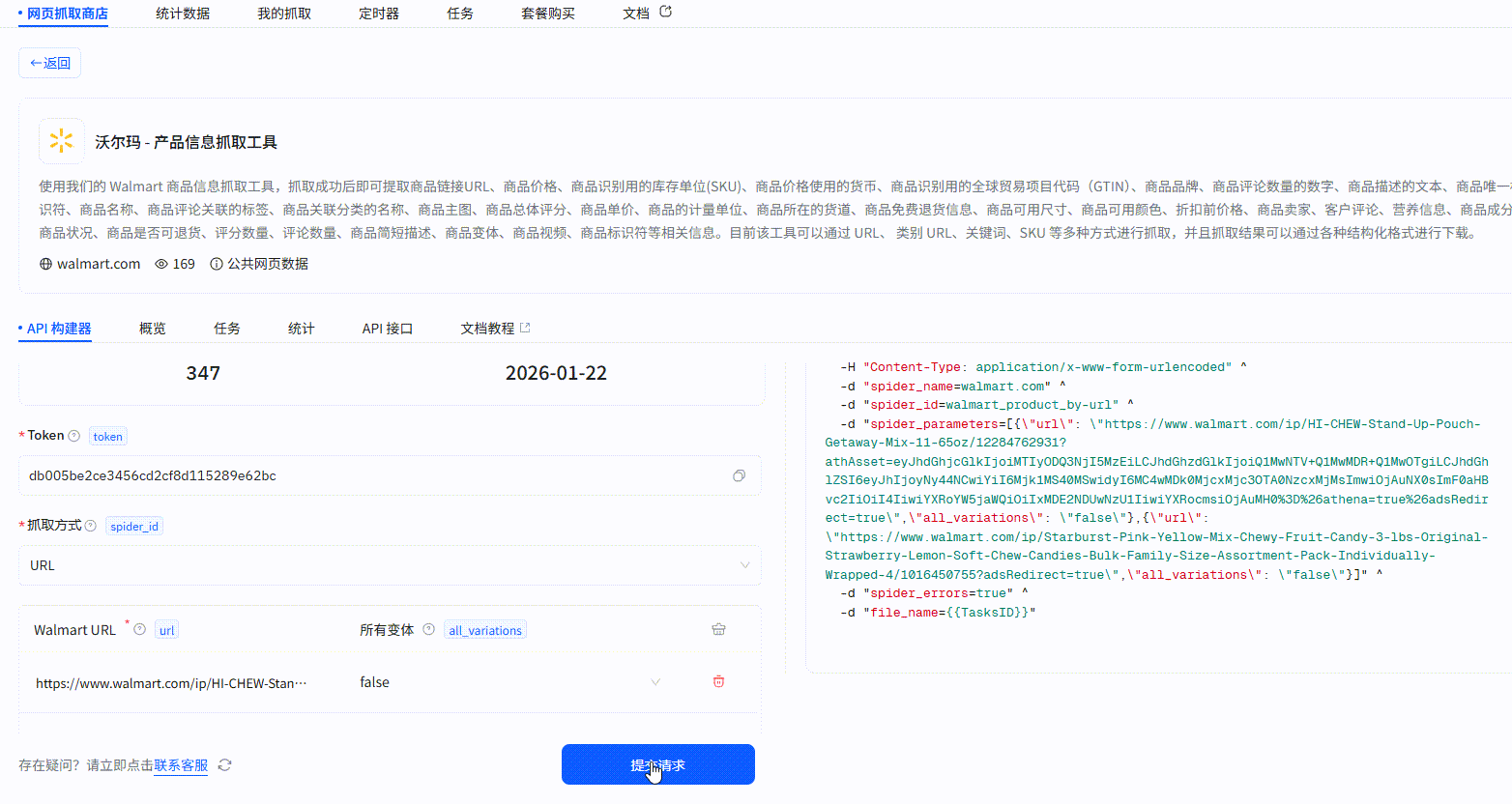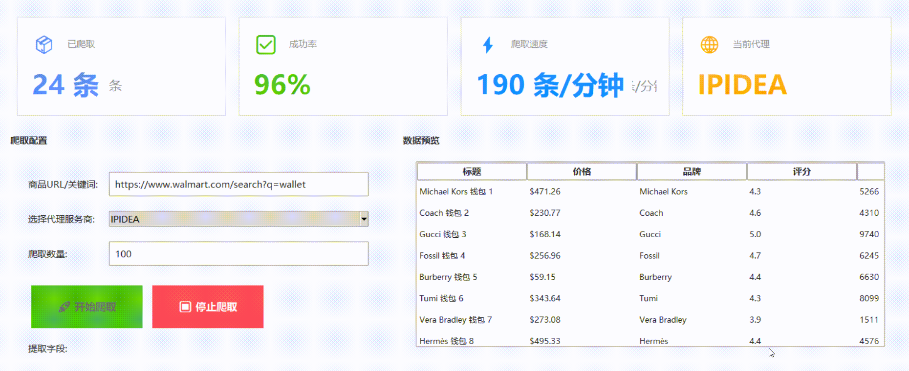 除了动态代理之外,我们可以依据IPIDEA的网页抓取API在线一键获取沃尔玛的商品信息:
