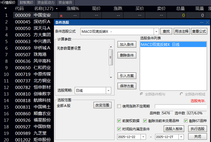 DIFF与DEA形成低位二次金叉,且第二次金叉前未出现无效的底部计数;