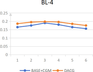 图5. H值变化对BLEU-4分数的影响。
