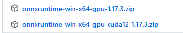 基于简化部署,我选择的版本为onnxruntime-win-x64-gpu-cuda12-1.17.3版本。