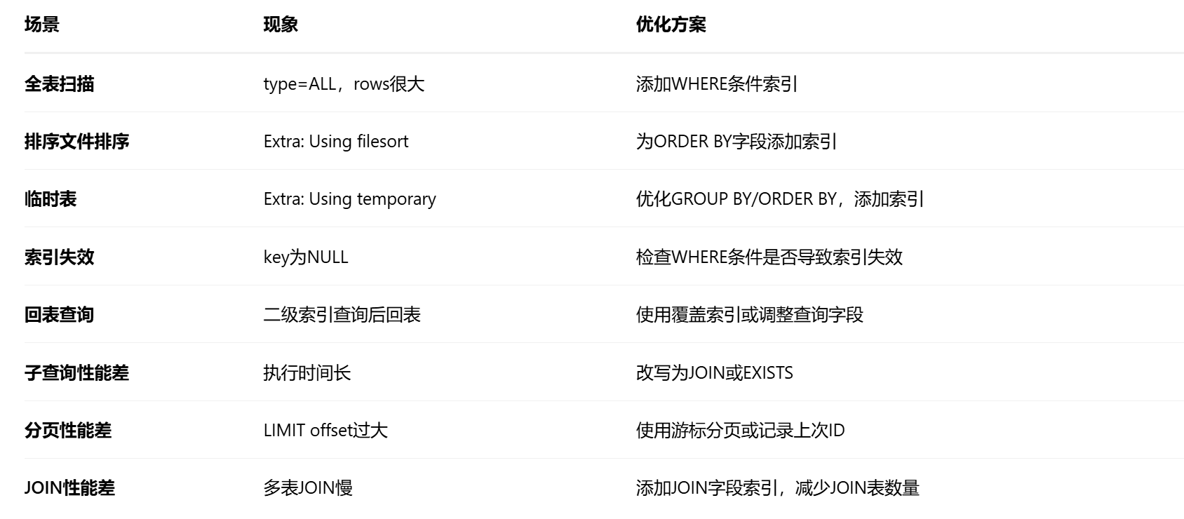 五、常见慢查询场景与解决方案