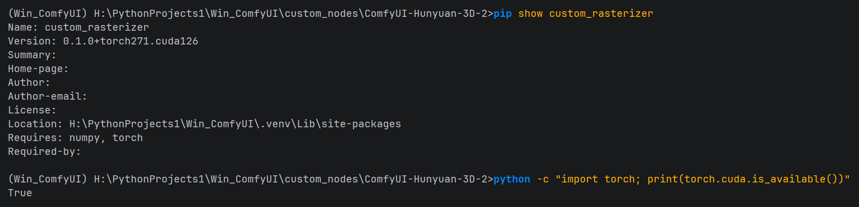 python -c "import sys; sys.path.append('custom_nodes/ComfyUI-Hunyuan-3D-2'); import hunyuan_3d_node; hunyuan_3d_node.Hunyuan3DImageTo3D.install_check()"