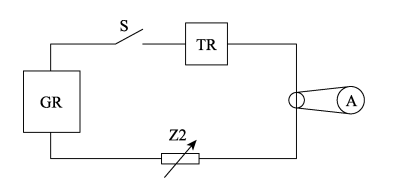 过负荷保护测试步骤:将被测试样按图2所示与设备连接,导线上套入钳式电流表A,将开关S接通后,记录试样完成过负荷保护时间。