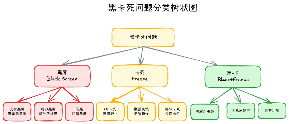 基于实际项目经验,黑卡死问题的根因可以分为以下几大类: