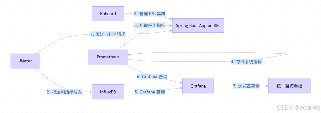 4.统一可视化 → Grafana 展示压测 + 系统监控