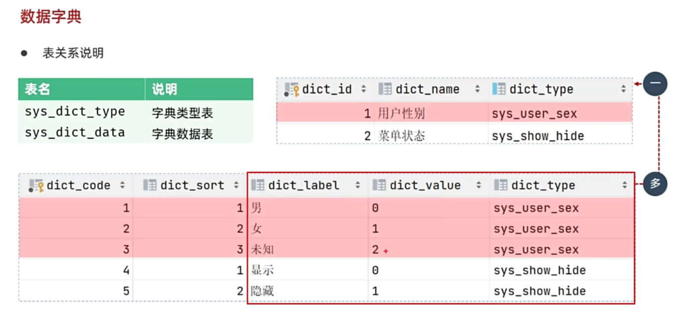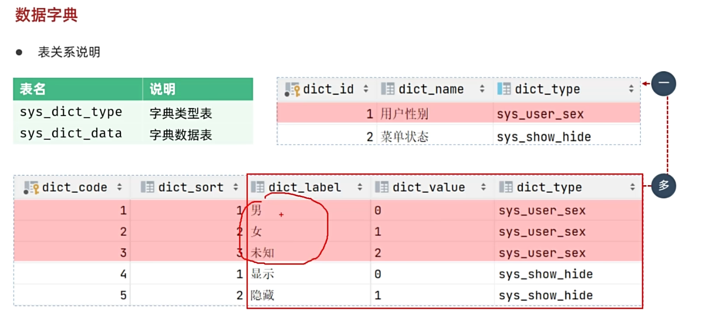 页面展示dict_label,数据库存储的是dict_value,降低存储空间