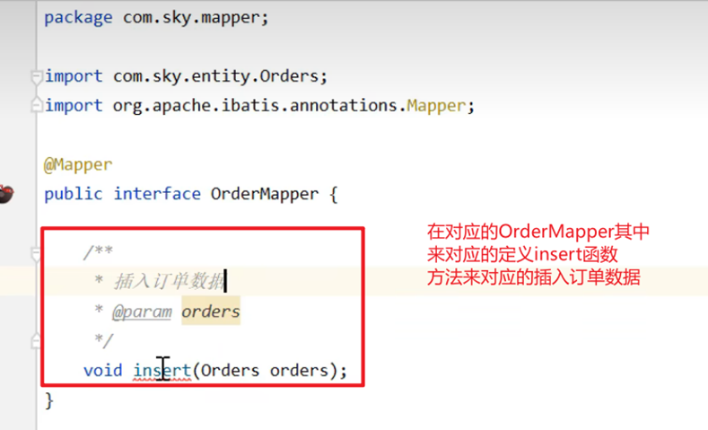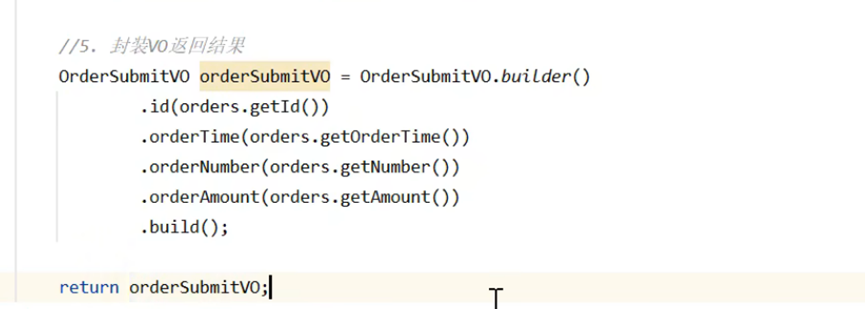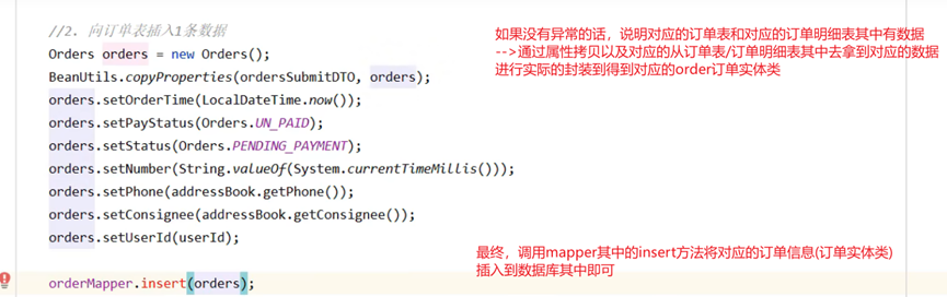 首先我们需要先来根据前端所传递的数据来构建一个订单对象,通过订单对象再想对应的订单表其中来对应的插入一条数据即可 (由于需要向订单表其中来插入一条数据,那么我们就需要向其中来创建一个订单实体类向其中封装数据)