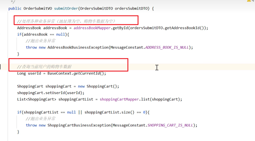 订单提交之前,校验性工作(也就是处理一下业务的异常)