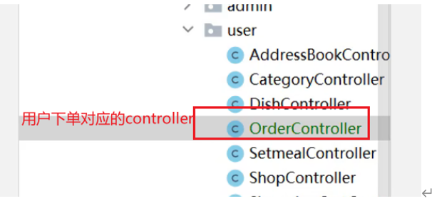 此处的订单操作属于用户端其中的操作,因此对应的controller对应的创建在user包下