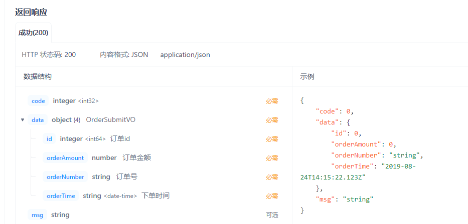 data:响应的核心部分,包含了订单相关的详细信息