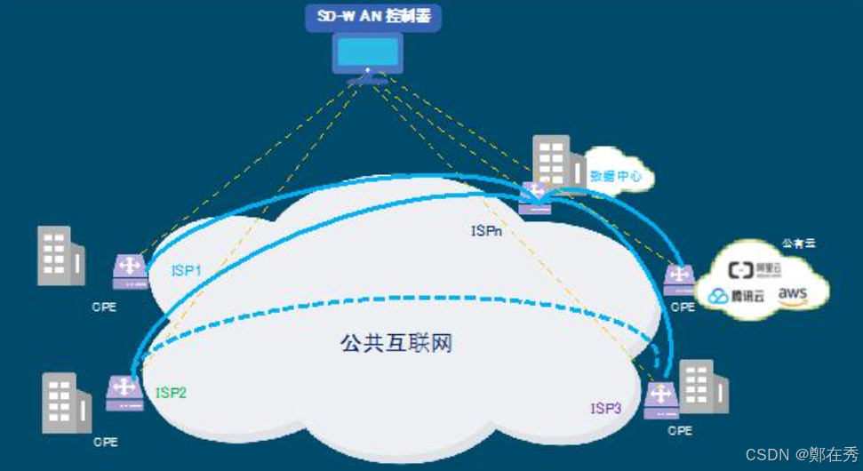 通俗来说:SD-WAN是一种通过软件控制器,整合MPLS、互联网、4G/5G 等多种链路为企业提供跨地域网络连接。